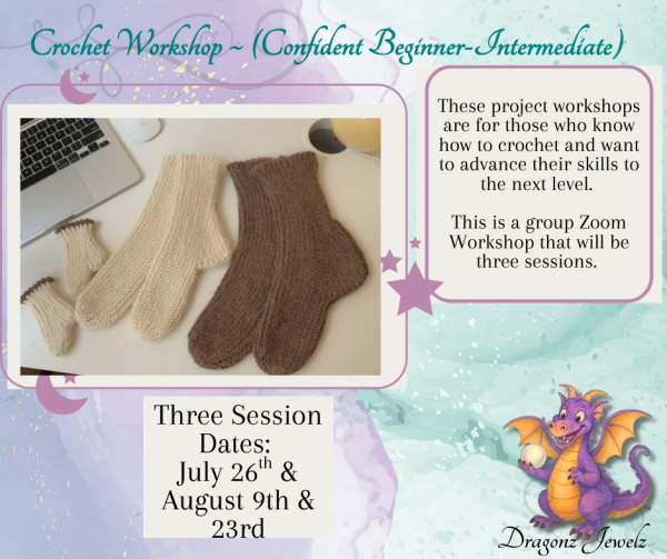 Crocheted Socks WorkShop (#2) 7/26, 8/9, 8/23